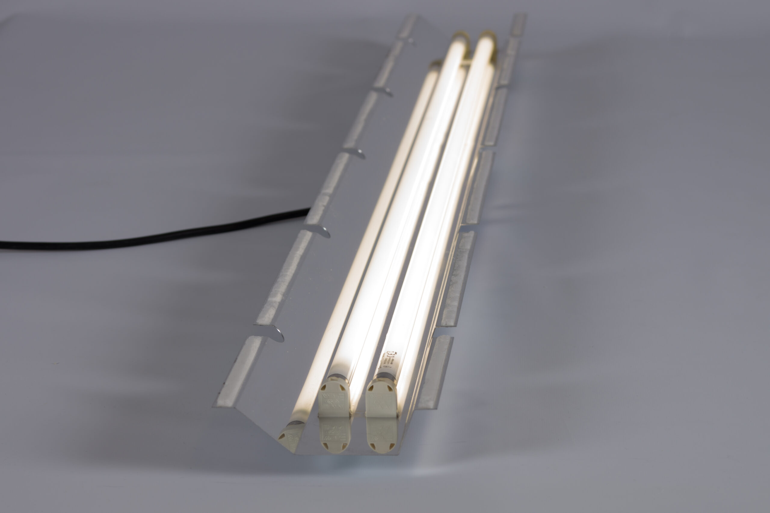 Umbau einer Stehleuchte mit vier Leuchtstoffröhren. Der hohe Energieverbrauch von 250W zeigt ein hohes Potenzial um Energie einzusparen.