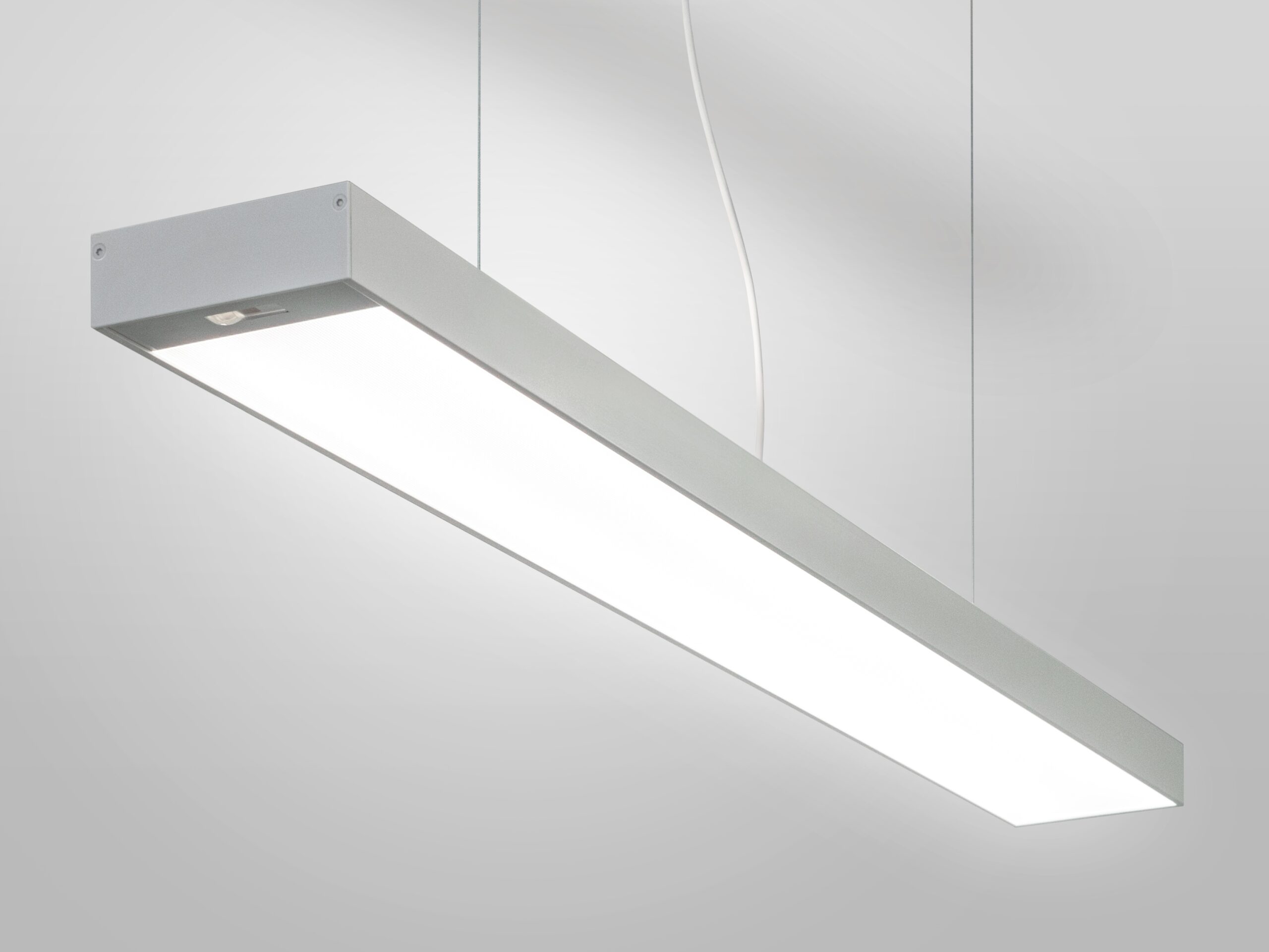Intelligente Pendelleuchte für Anwendungen an Arbeitsplätzen. Mit der mikroprismatischen Abdeckung erreichen wir eine optimale Entblendung, UGR<=19, bei maximaler Effizienz.