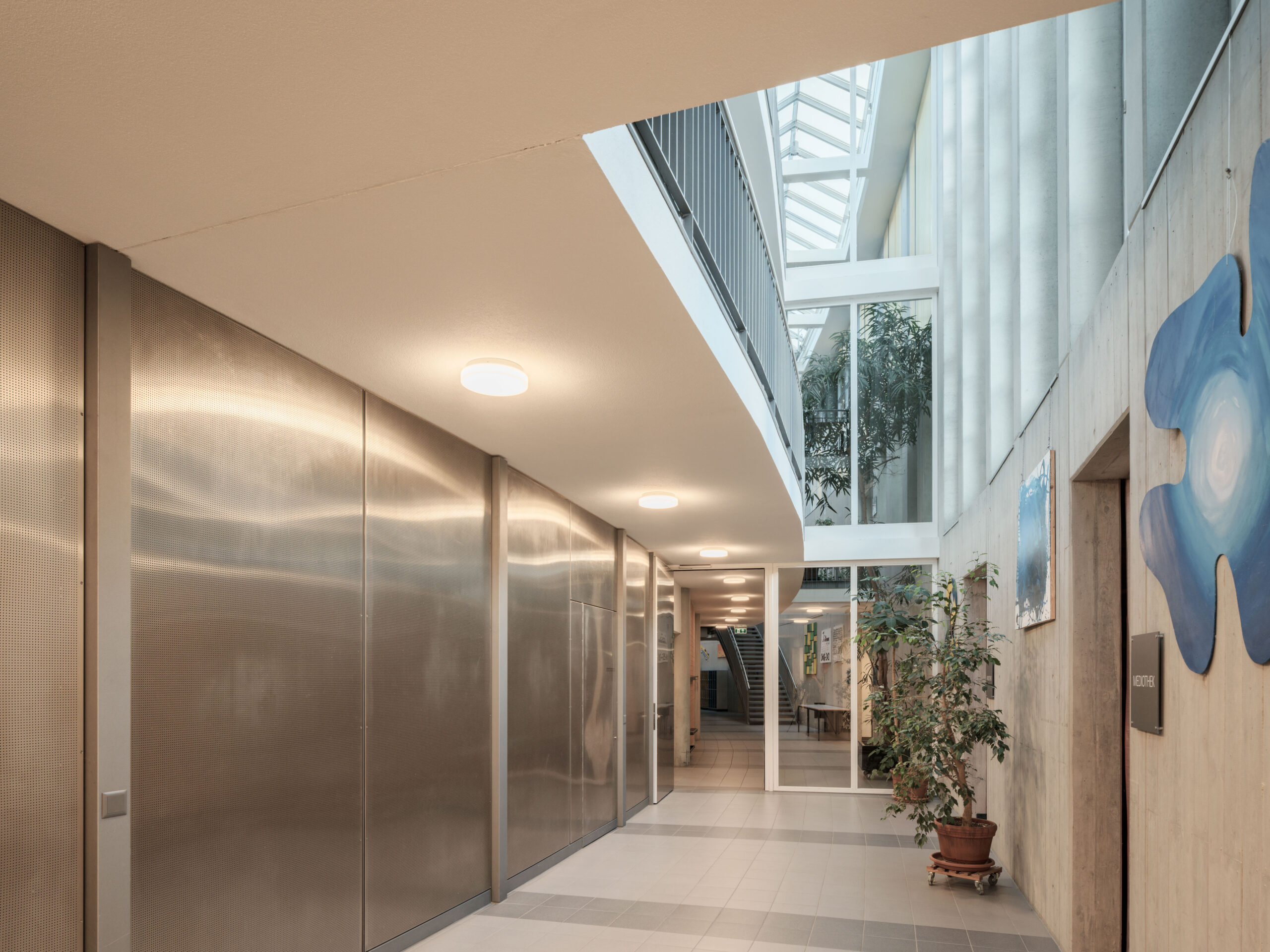 Diese Steuerung sorgt für eine energieeffiziente, dynamische Beleuchtung, die optimal auf die schulischen Bedürfnisse abgestimmt ist.
